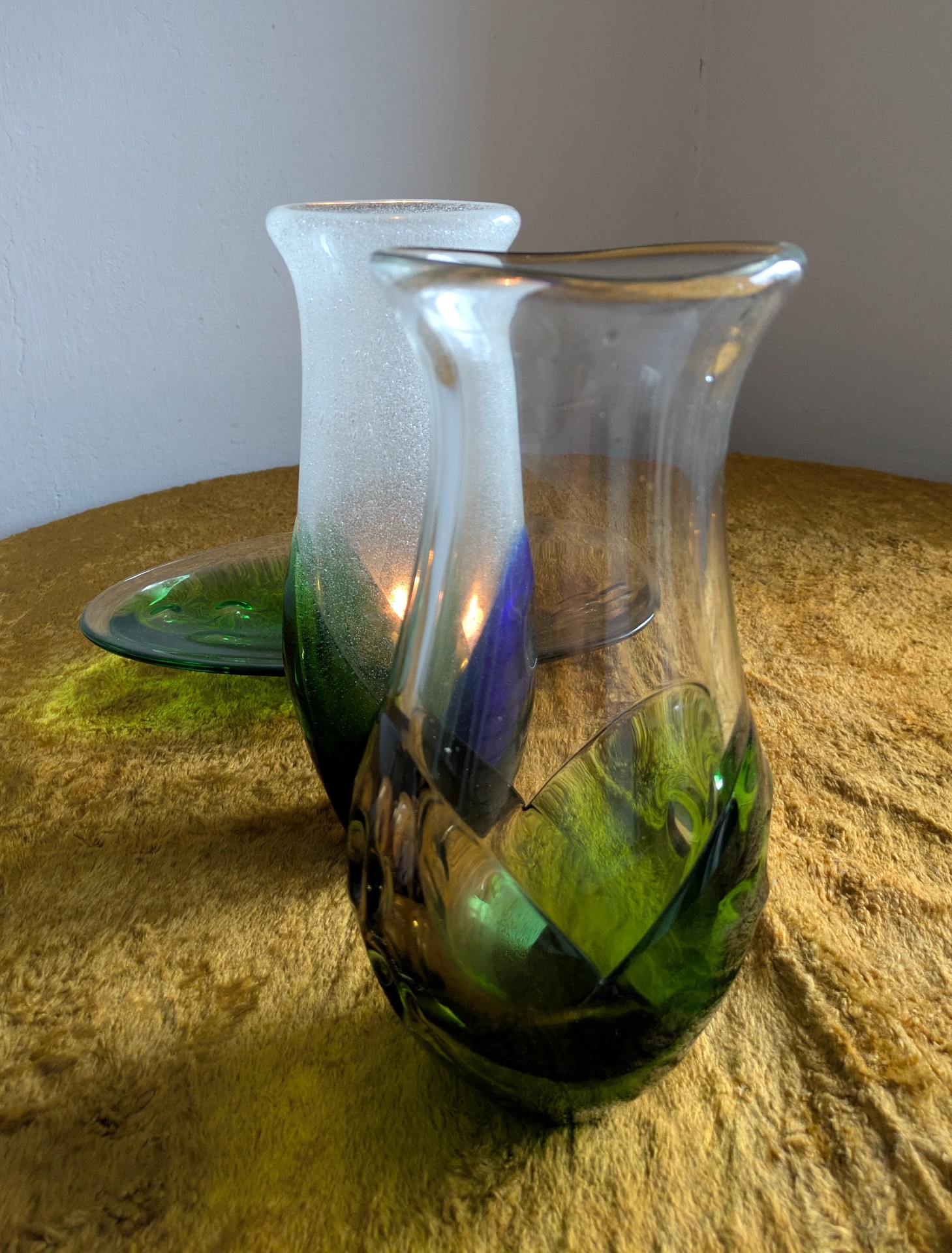 Prodám dvě vázy a mísu z hutního skla Škrdlovice.